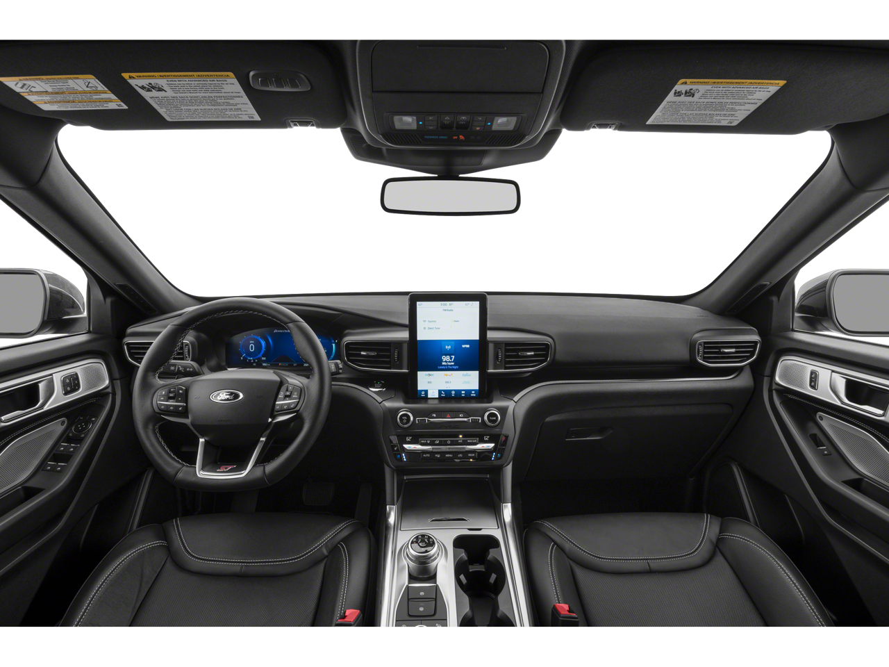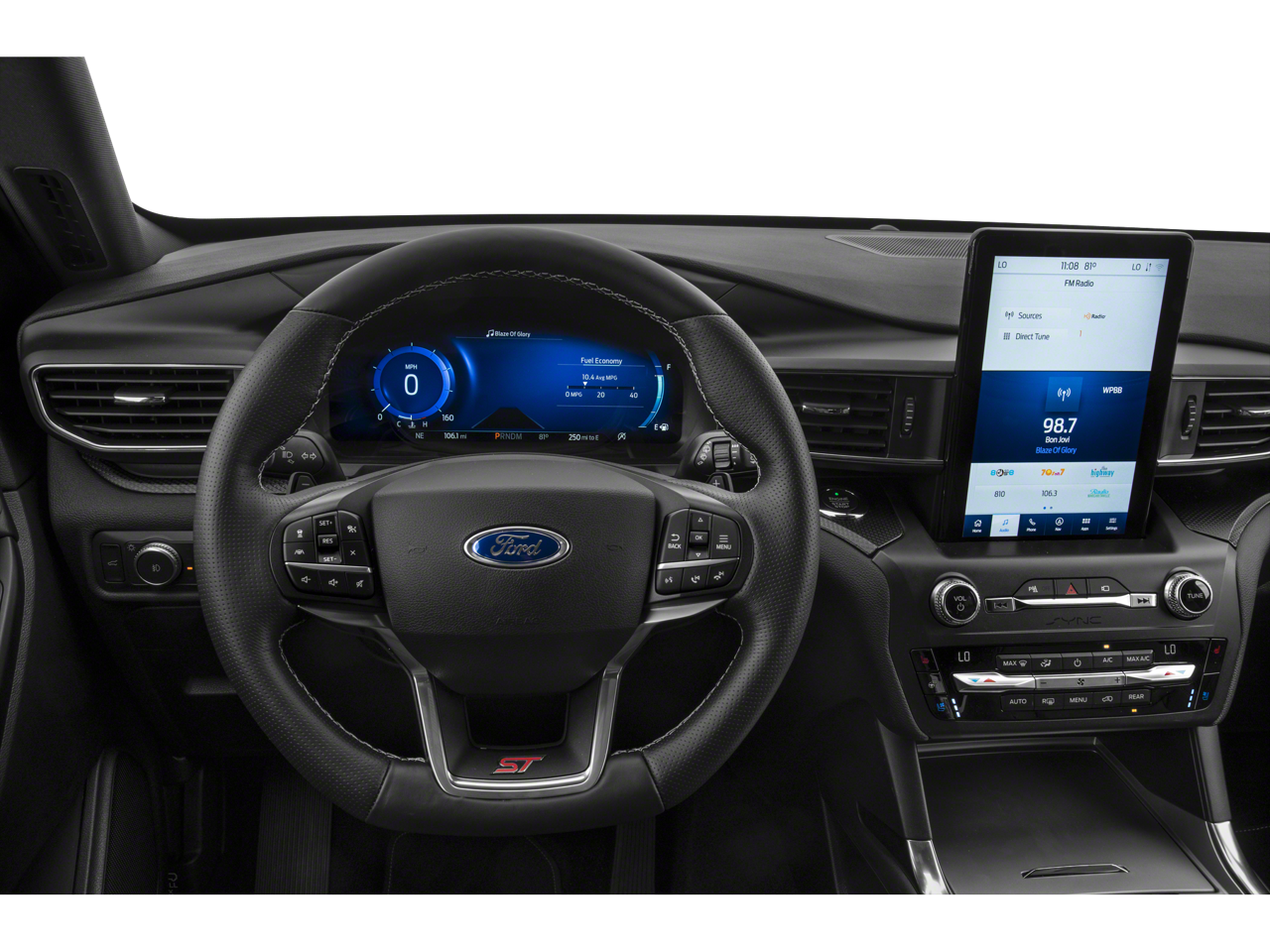 The interior of this Explorer ST is a true sanctuary of comfort and convenience. Sink into the plush, ventilated leather-trimmed sport captain's chairs and enjoy the warmth of the heated steering wheel. The SYNC 3 infotainment system, with its 10.1-inch touchscreen and premium Bang & Olufsen sound system, keeps you connected and entertained. Seamless smartphone integration via Apple CarPlay and Android Auto further enhances the driving experience.
