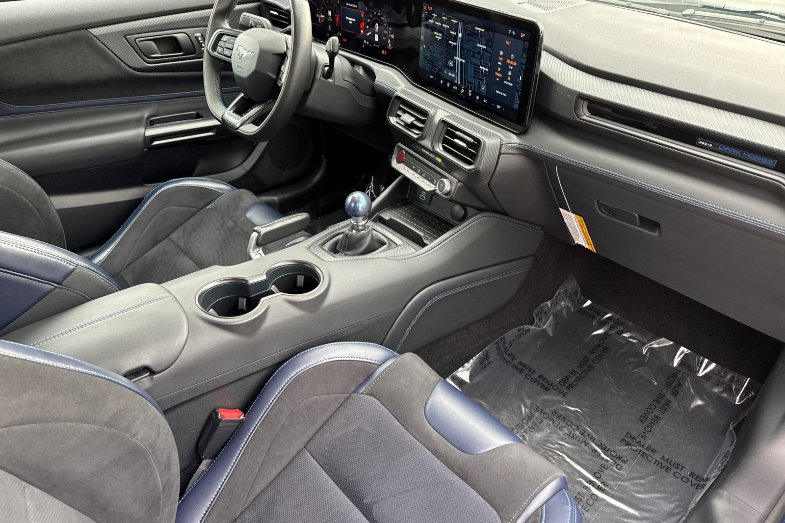 This 2024 Ford Mustang come equipped with, One Owner Clean History Report, One Owner!, Hard to Find, Like New, Super Clean, Almost New!, Mustang Dark Horse Equipment Group 700A Handling Package, 2D Coupe, Tremec 6-Speed Manual, Blue, Black W/Blue Accents Premium Synthetic, Active Anti-Theft System, Aluminum Foot Pedals, Approach Detection, Cloth/Vinyl Climate-Controlled Bucket Seats, Dark Horse Appearance Package, Dark Horse Handling Package, Electronic-Locking Center Console, Equipment Group 700A Deluxe Package, Front Towing Hooks, Magnetic Damping System, Memory Driver Seat & Mirrors, Navigation system: Connected Navigation, Notorious Blue Unique Brake Calipers, Painted Black Roof, Performance Front Aero Splitter, Performance Rear Spoiler w/Gurney Flap, RECARO Micro-Suede/Vinyl Bucket Seats, RECARO Sport Seats, Security Package, Unique Hood Graphic, Universal Garage Door Opener (UGDO), Wheel Locking Kit, Wheels: 19 x 10.5 Fr/19 x 11 Rr Tarnished Alum.